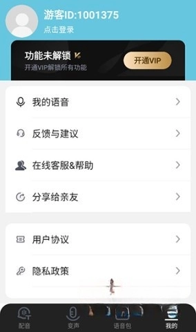点击“我的”即可进入个人中心,在那里能查看个人信息以及自己录制的语音内容。