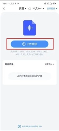 2、打开音频翻译功能,导入需要识别的文件;