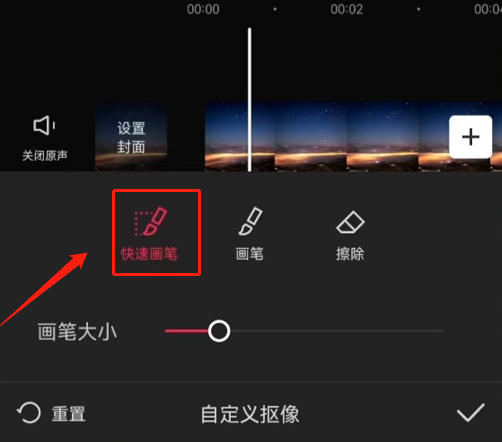 第四步,点击快速画笔工具并调整好画笔大小,之后在待抠图的物品上简单描绘一两笔,系统便能智能地快速将整个物体完整抠取出来。