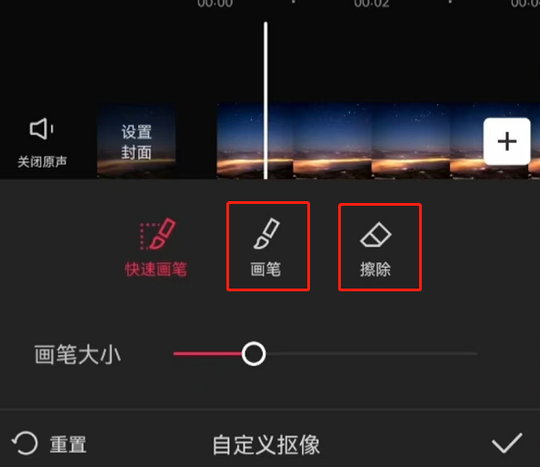 第五步,要是对智能识别的抠像效果不满意,还能点击画笔与擦除工具,在物体上自由涂抹来调整抠像。