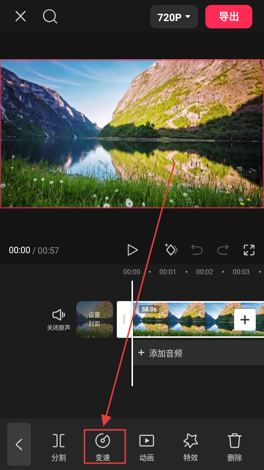 进入视频编辑页面后,我们可以对视频执行多种编辑操作。点击【变速】选项,即可进入变速功能界面,进而调整视频的播放速度。
