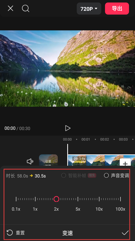 4、选好变速方式后,我们可在速度调节栏里设置具体的变速倍数,设置完成后,视频播放速度便会依照设定的倍数改变。