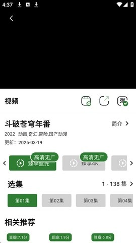 1.开启设备,播放你通过投屏功能投放的视频内容,像《斗破苍穹年番》这类都可以。