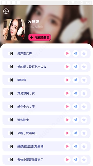 2、另外,只要看到想使用的语音包,就可以点击查看其详细内容,要是喜欢的话还能进行收藏,方便下次使用。