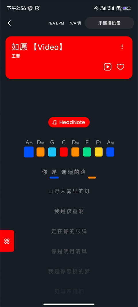 弹奏时可把这组3级(DM、AM、G)和弦换成节奏垫,此时交互乐谱会自动跳过该和弦;考虑到新手或许难以跟上鼓机节奏,建议先开启鼓机仅弹奏不唱词来练习节奏感,等熟悉歌曲节奏后再唱出歌词。