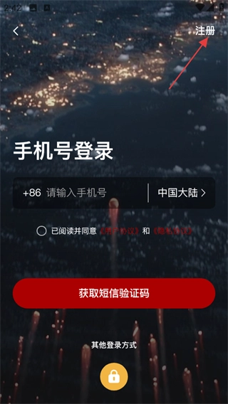 3、在登录页面,点击右上角的注册选项,进入注册页面。