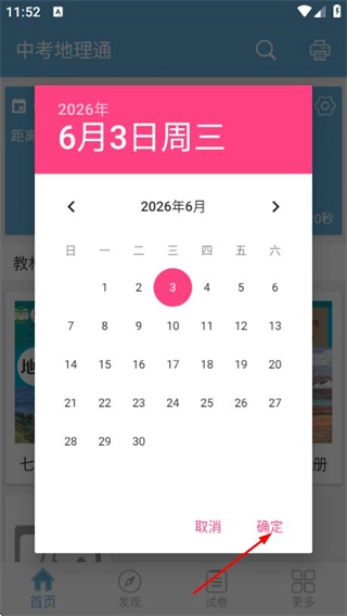 3、选定日期后,点击弹窗右下角的确定按钮,即可完成中考倒计时的日期设置。