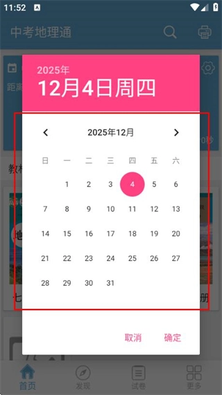 1、在首页中考倒计时的旁边点击设置按钮,即可打开日期选择的弹窗。