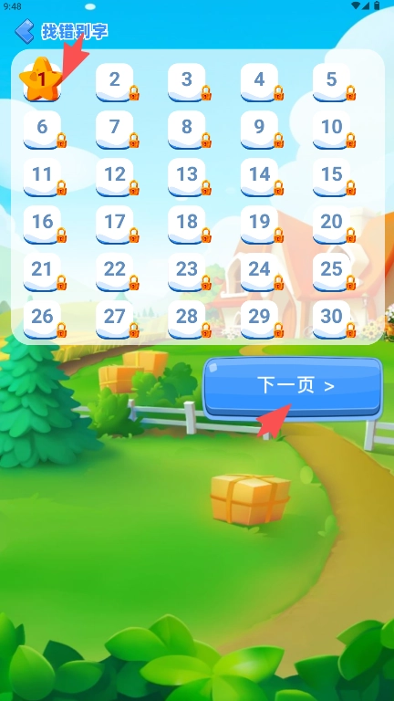 3、按照题目要求在界面上找出错别字(例如“驰”),答对之后点击“下一关”按钮继续。