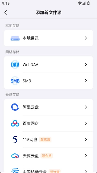 5、灵活的资源导入方式:除了主流网盘,还支持通过WebDAV、SMB协议挂载NAS或自建媒体服务器,也能接入Emby、Jellyfin等媒体系统。
