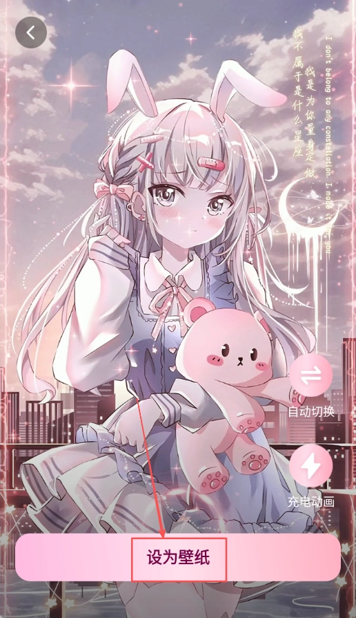3、点击设为壁纸将其应用为桌面壁纸操作,点击设为壁纸按钮将该壁纸应用到手机桌面背景显示。