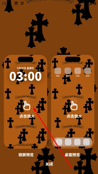 2、在精选壁纸列表中,点击目标壁纸(如橙色十字架样式),可进入该壁纸的预览界面。