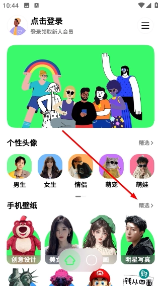 1、在个性化资源平台首页,点击“手机壁纸”旁的“精选”按钮,可进入手机壁纸的精选列表页面。