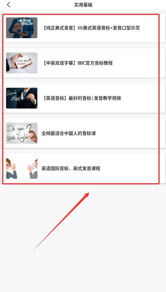 2、想学习音标可以前往实用基础板块,那里有不少专业课程,像美式发音、BBC教程等,挑选一个自己感兴趣的点开,跟着学习就可以了。