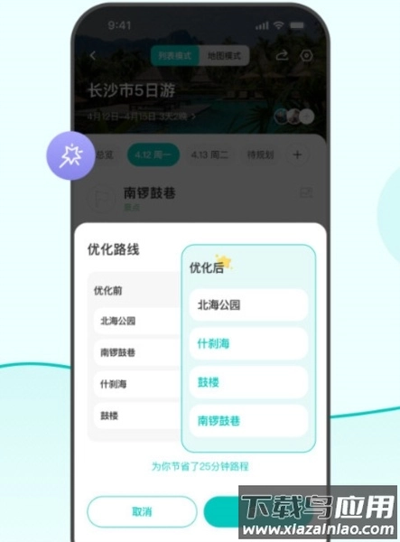只需粘贴攻略链接,系统就能智能识别景点信息,并自动规划出最优路线;地图和列表两种模式可自由切换,交通方式与距离也都标注得十分清晰。
