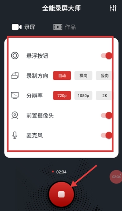 1、打开并进入录屏设置界面,你可以在这里对各项参数进行调整,点击界面底部的红色开始按钮,就能启动录屏功能了。