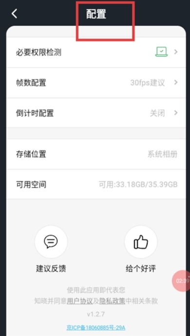 3、找到配置页面的入口并进入,在此处可进行帧数设置,还能查看存储路径及可用空间情况。