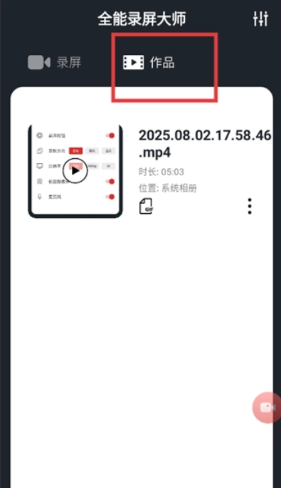 2、点击顶部的“作品”选项卡,进入作品页面,在该页面中可以查看所有已录制完成的视频文件。