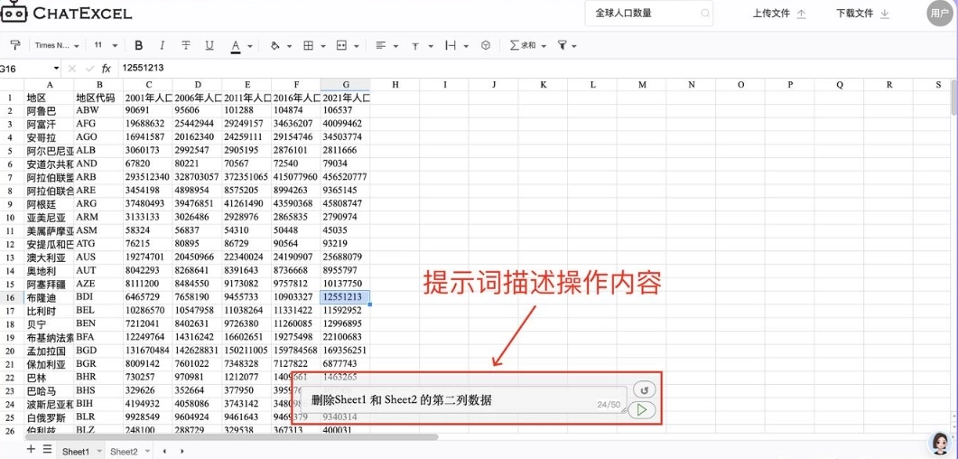 使用ChatExcel时,用户既不用费力记住各类Excel函数,也无需手动去设置复杂公式,仅需通过输入提示词来表达自己的需求,ChatExcel就可以自动完成相应的操作。