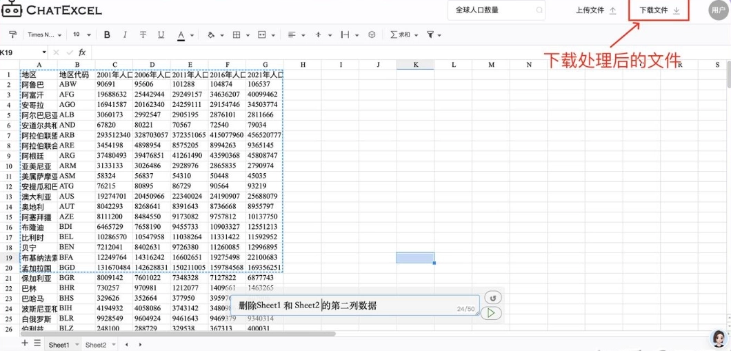ChatExcel 具备一键导出处理后文件的功能,便于后续使用。