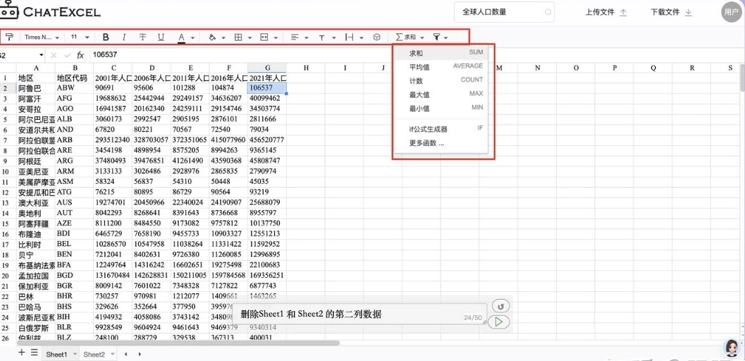 ChatExcel 允许用户在线对当前文件进行编辑操作,之后还能继续输入提示词开展后续任务,便于用户完成数据微调之类的工作。这些操作涵盖了各类「样式」「函数」「过滤条件」等内容。