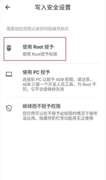 3、由于我们尚未赋予它root权限,所以需要点击【使用root授予】来开启权限。