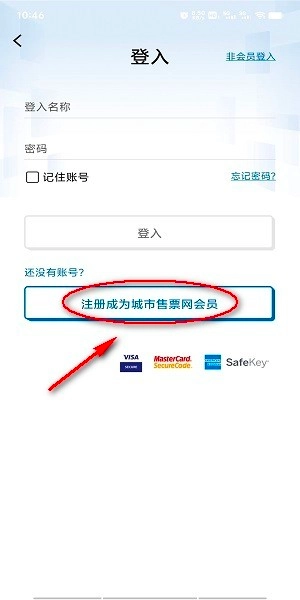 新用户请点击页面底部的“注册成为城市售票网会员”按钮完成注册;老用户则可直接进行登录操作。