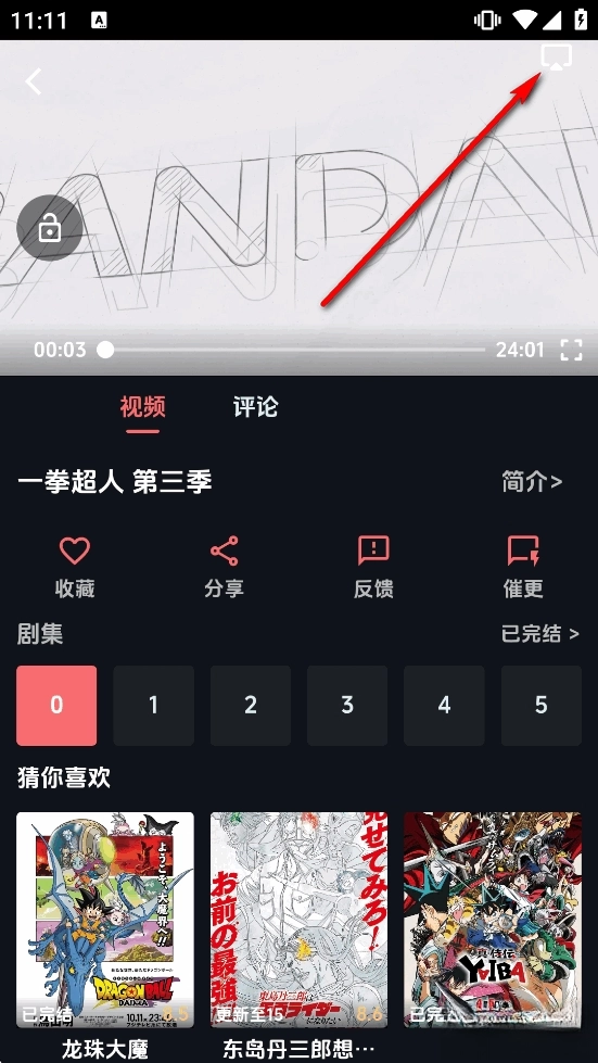 点击想要投屏的的动漫