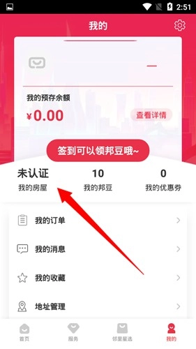1、点击个人中心【我的房屋】进入绑定页面