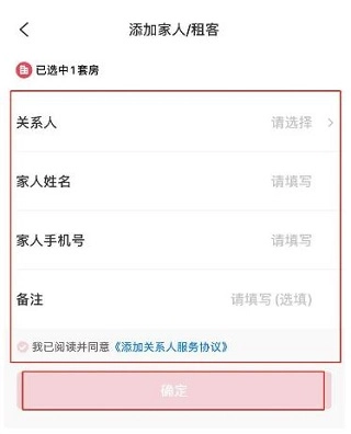 3、填写家人/租客信息,点击【确定】完成绑定
