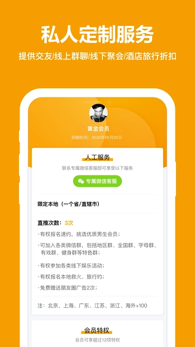 5、会员专属定制:为用户构建全新的世界体验模式,提供涵盖旅游、聚会、交友等多维度的全方位服务