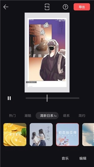 只需挑选你想要处理的视频文件、模板和音乐,接着点击“导出”按钮就可以了。