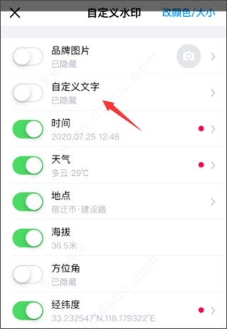 将“自定义文字”右侧的复选框进行勾选打开即可。