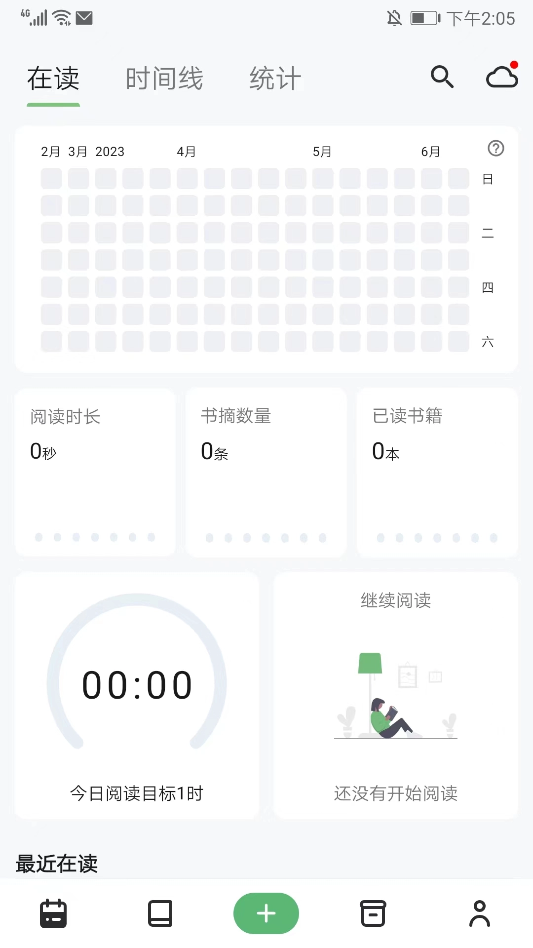 打开纸间书摘应用,进入日历界面后,你能看到当前的阅读时长、书摘数量、已读书籍,还可以进行阅读目标的设定等操作。