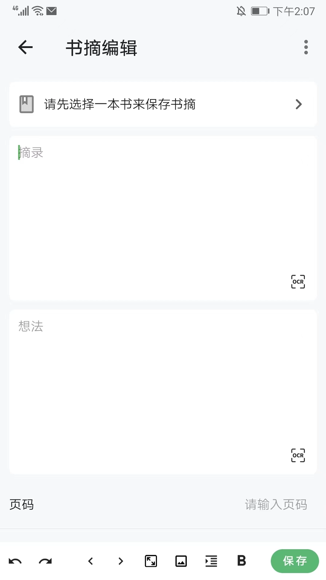 在书摘编辑界面,我们能够挑选对应的书籍,开展相关的摘录以及想法的编辑工作。