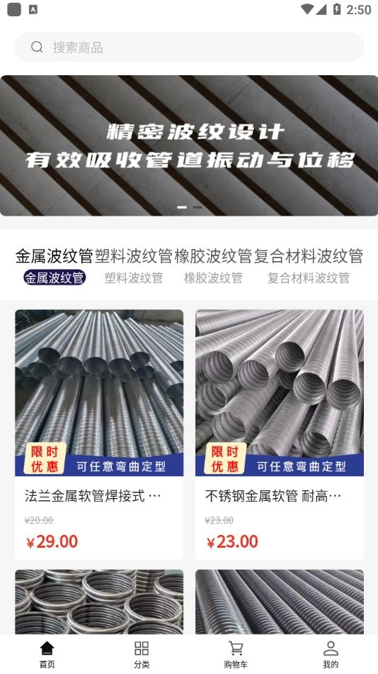 进入该平台后,用户能够挑选各类金属软管进行选购与付款操作。