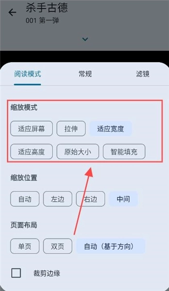 2、进入显示设置菜单后,向下滑动找到「缩放模式」选项,该选项提供智能适配、固定宽度、原始比例等6种模式,可根据个人偏好进行选择。