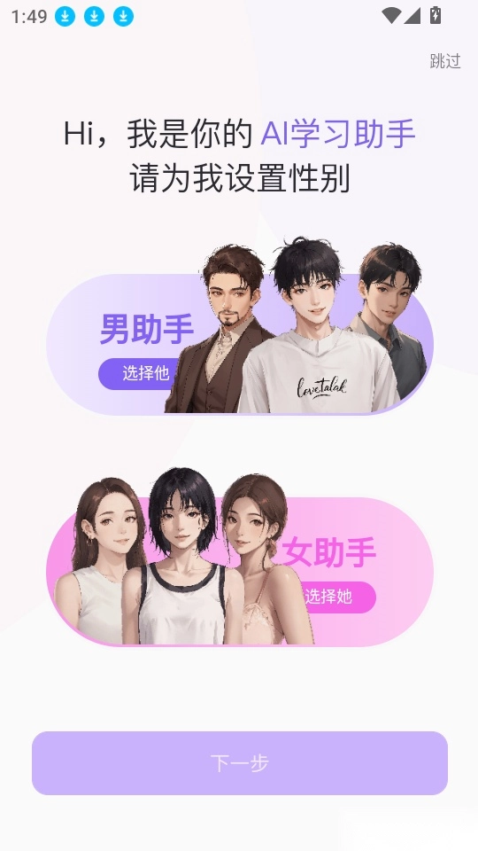 之后就能在学习助手的设置界面中,点击右上角的“跳过”按钮,继续进行下一步操作。