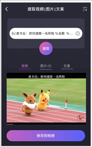3、复制完成后,打开此软件,点击首页的[提取视频|图片]选项,进入相应页面,将刚刚复制的链接粘贴至输入框,再点击[提取]按钮即可。