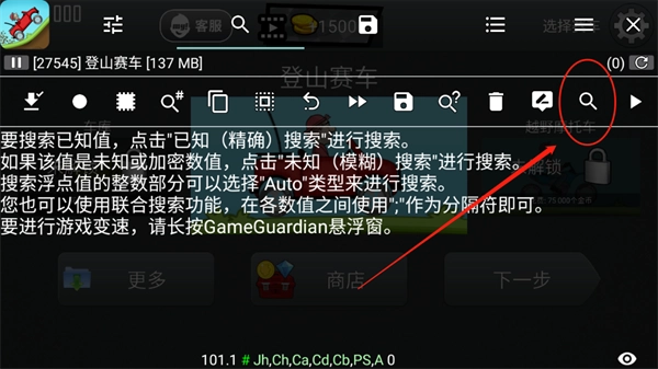 7、你也能够选择“Auto”,让GG自行在游戏中搜寻能够修改的参数。