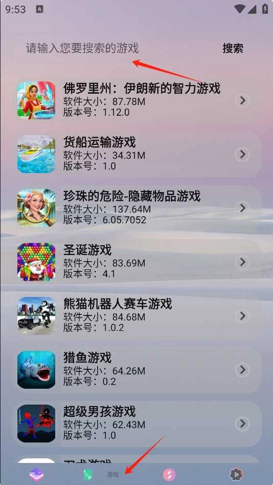 3.点击搜索框,输入关键字,得到搜索的游戏;