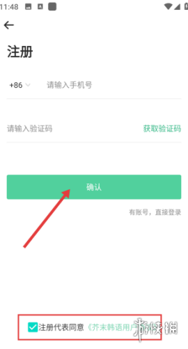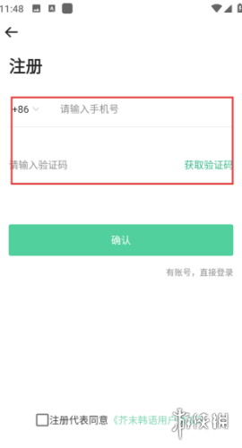 2、在输入手机号码之后,获取验证码,并填写接收到的验证码。