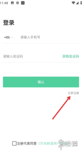 1、请开启芥末韩语App,然后点击“立即注册”按键。