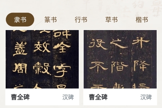 1. 丰富字帖库:包含众多隶书与篆体经典碑帖,像《曹全碑》《史晨碑》《峄山刻石》《石鼓文》等等,给学习者供应丰富的临摹范本。