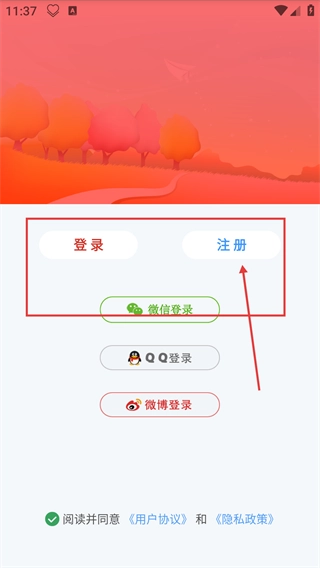 2、进入登录页面后,可选择【登录】-【注册】方式,也能通过【微信登录】-【QQ登录】等第三方方式完成登录。