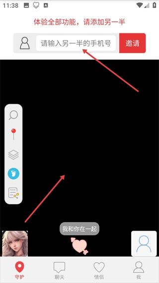 4、注册完成进入主界面后,在顶部输入【请输入另一半的手机号】,点击【邀请】添加对方以体验软件全部功能。