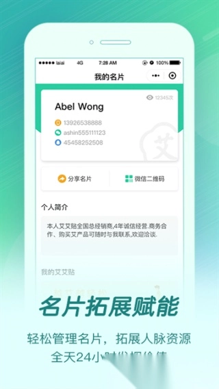 3.能够利用个人账号生成专属名片,便捷地分享给他人以实现互相关注,从而拓展人脉资源。