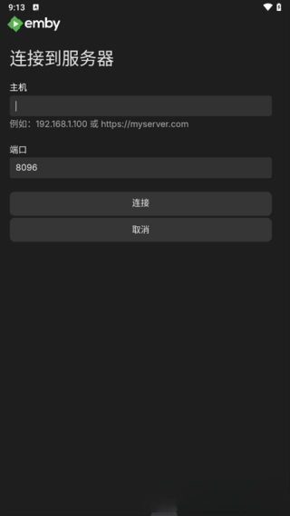 4.在主机位置输入服务器地址【emby.itcode.icu】,端口默认是8096不需要更改,点击连接按钮即可开始向服务器发起请求。