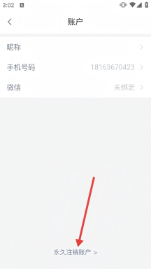 3、进入「账户」页面,向下滑动页面,找到「永久注销账户」选项,开启账号注销流程。