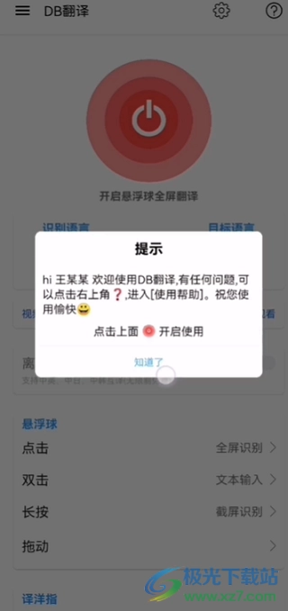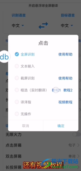 7、选好要翻译的语言后,在这个页面设置翻译方式,就能进行悬浮翻译所有内容了。